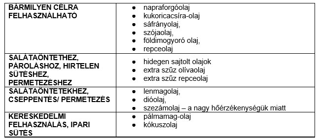 A leggyakrabban használt növényi olajok jellemzése